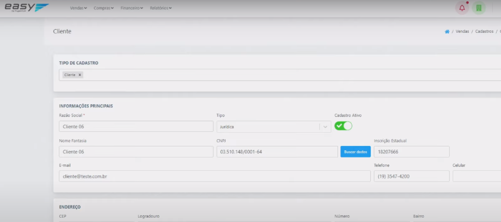 Após seguir as etapas mencionadas, uma nova tela surgirá contendo detalhes abrangentes sobre o cliente em questão, como IE, razão social e outros dados relevantes. Agora, você pode copiar a Inscrição Estadual correta e atualizá-la no sistema, garantindo a precisão das informações registradas.