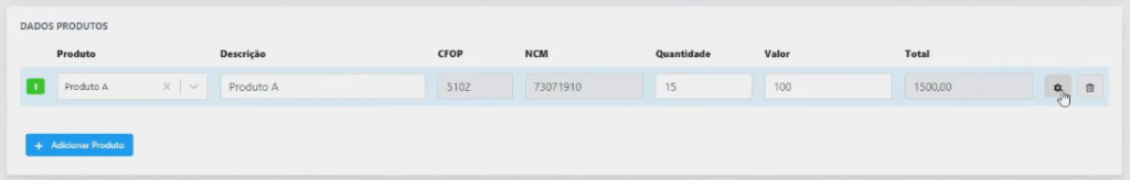 Para isso, vá até Dados Produtos e clique no ícone da engrenagem.