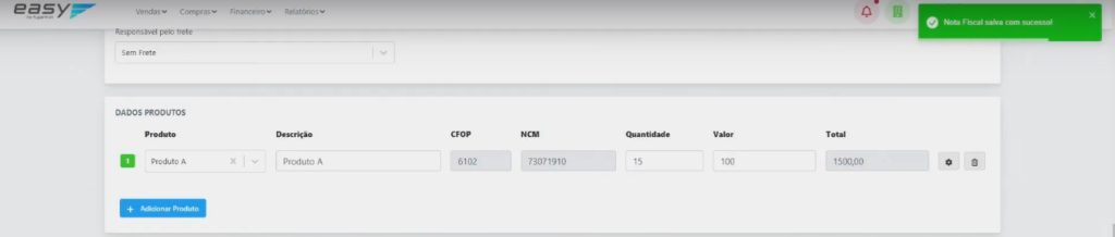 Agora clique em Salvar e a Nota Fiscal estará pronta para transmissão correta.