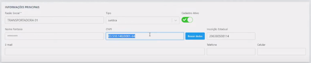 Neste exemplo, a cidade é de São Paulo, então o que se deve fazer agora é copiar o CNPJ da transportadora.