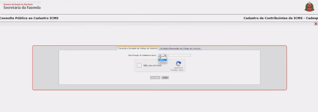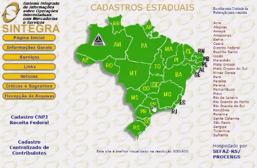 Após copiar, você deverá ir ao site do SINTEGRA e selecionar o estado correspondente ao de sua transportada, no caso SP.