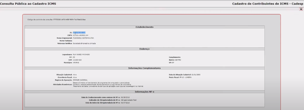 As informações referentes a este cliente como Natureza Jurídica, Logradouro, Tipo de atividade que a empresa exerce e mais, estão disponíveis. Neste caso você quer somente a IE, então é só copiar e colar no sistema de notas.